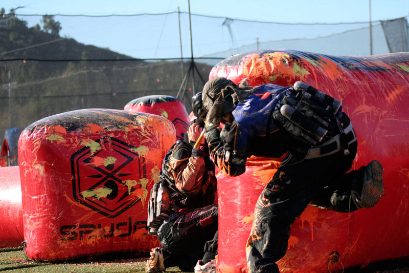 Within seconds Tanner sped past Bejan, crawling on his elbows and shins. He rose just slightly to look over the top of the low snake bunker and took out one of the last players. Jamie ran from from the back and landed behind Bejan.