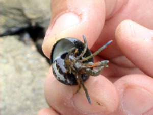 “This is a hermit crab. We call them hermit crabs because they live in shells of creatures that have already died. When they grow they just find another shell and move in.”