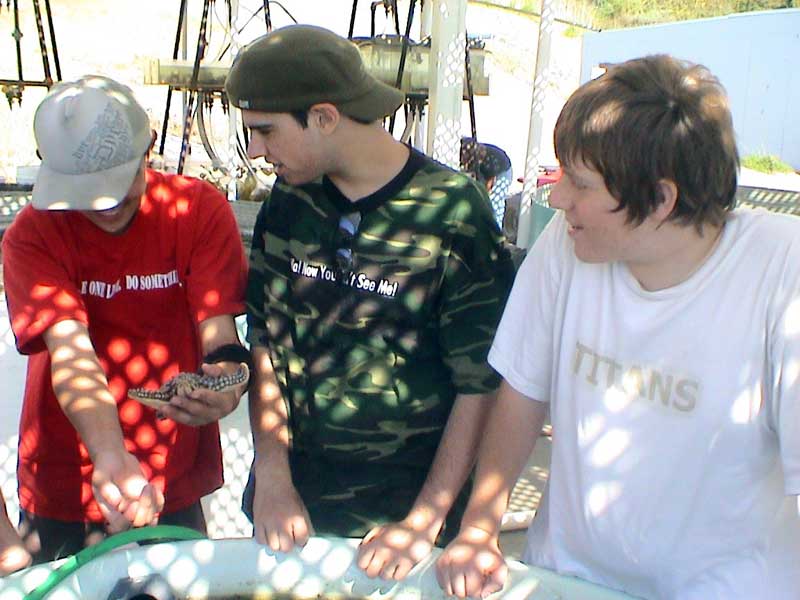 The cheerful laughs and chuckles of the boys and their dads filled the air as the little creatures scampered wildly across the tank in their attempts to avoid getting caught.