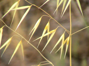 “People from all over the world invaded the island and brought their plants and animals with them. The Spaniards brought wild oat.” Ellen pointed out a wild oat plant. She kneeled down slightly and picked off a twig to show us the dry-brown husks and pointed to the tiny oat kernel.